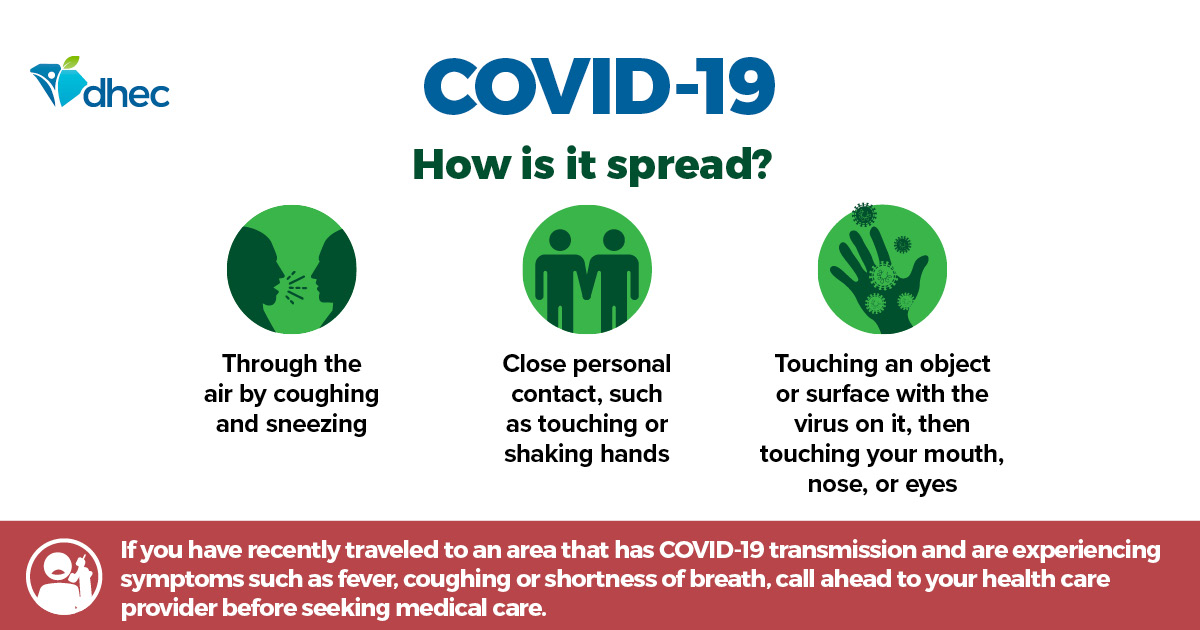 The virus that causes COVID-19 is mainly transmitted through droplets generated when an infected person coughs, sneezes, or exhales. These droplets are too heavy to hang in the air, and quickly fall on floors or surfaces. You can be infected by breathing in the virus if you are within close proximity of someone who has COVID-19, or by touching a contaminated surface and then your eyes, nose or mouth.